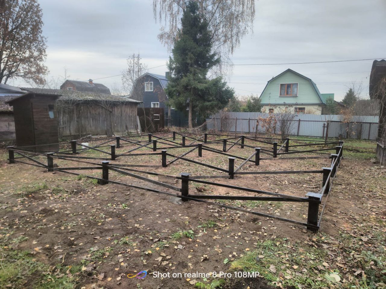 —Свайно-винтовой фундамент с укосинами и обвязкой профильной трубой